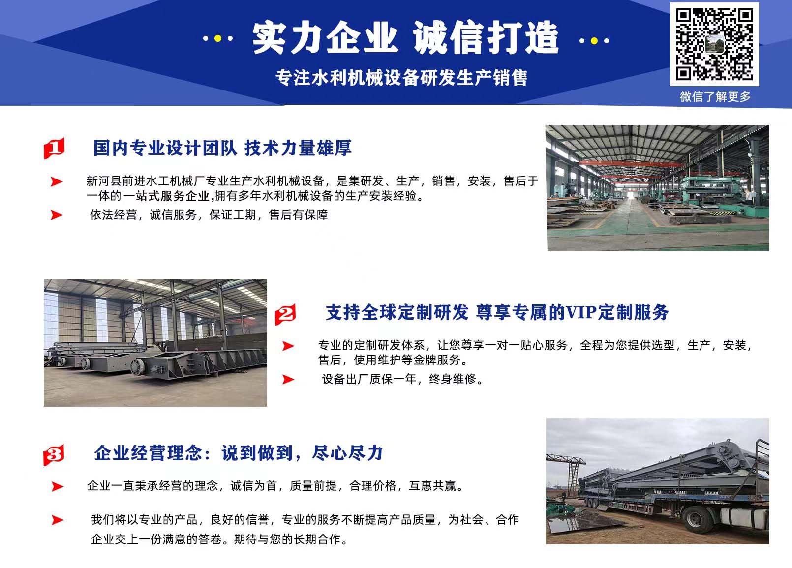 前進(jìn)水工優(yōu)勢(shì):具有專業(yè)研發(fā)團(tuán)隊(duì),精湛的制造工藝,嚴(yán)謹(jǐn)?shù)臋z驗(yàn)技術(shù),完善的售后服務(wù)